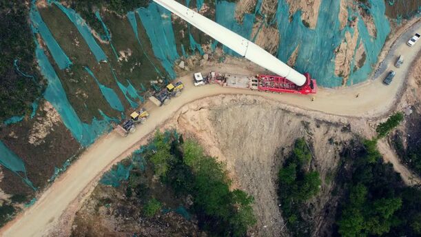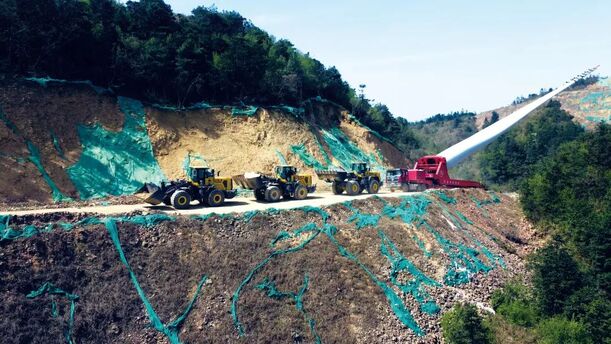 在廣西壯麗而險(xiǎn)峻的喀斯特地貌褶皺深處,一場(chǎng)工業(yè)文明與自然之力的深度對(duì)話正拉開(kāi)帷幕。核心任務(wù)是將單片重逾20噸、整車(chē)載重高達(dá)180余噸的風(fēng)機(jī)大件,沿總長(zhǎng)60多公里、最大坡度超過(guò)20度的崎嶇山路運(yùn)送至山頂。如此惡劣的工況,對(duì)設(shè)備的動(dòng)力性、穩(wěn)定性與承載能力提出了近乎極限的考驗(yàn)。