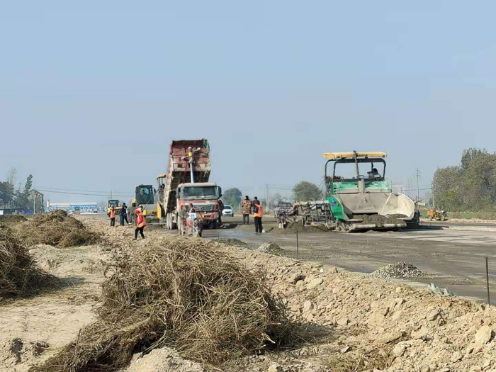 在濰坊市昌樂縣某園區(qū)道路的施工現(xiàn)場,山推成套路面施工設(shè)備包括壓路機(jī)、攤鋪機(jī)等正有條不紊的進(jìn)行水穩(wěn)層施工。山推設(shè)備質(zhì)量可靠,高效穩(wěn)定,施工期間未出現(xiàn)任何問題,圓滿完成施工任務(wù),縮短了整個(gè)施工周期,贏得了施工方的高度贊譽(yù)。