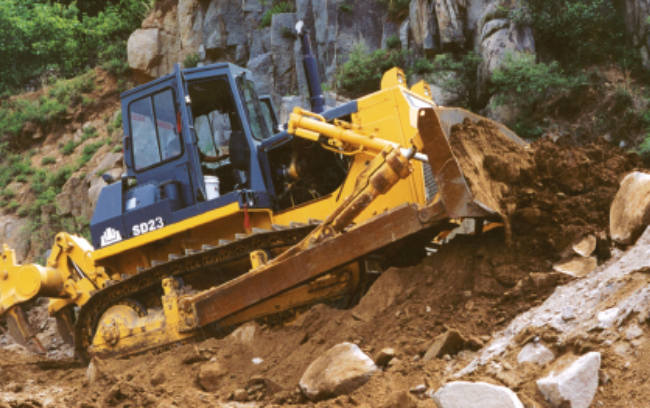 SD23推土機某山壩征戰(zhàn)作業(yè)。SD23推土機采用山推自制傳動系統(tǒng)和底盤系統(tǒng),配置重發(fā)/濰柴發(fā)動機,爬坡能力可達(dá)30°。由于超高的出勤率,超低的維護成本,贏得用戶充分認(rèn)可。