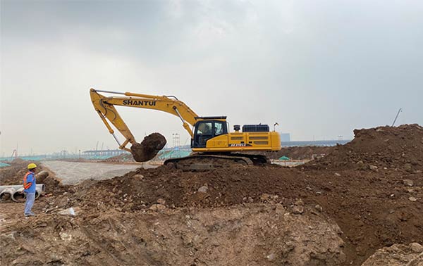 某大型建筑工地,成套采購(gòu)山推SE245LC、SE370LC等挖掘機(jī)進(jìn)行挖方、填方等作業(yè),山推設(shè)備以動(dòng)力強(qiáng)勁、質(zhì)量品質(zhì)高、效率高、故障率低贏得該工地青睞。