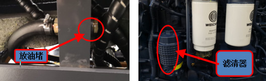 發(fā)動(dòng)機(jī)放油時(shí),發(fā)動(dòng)機(jī)應(yīng)在機(jī)油升溫至30-40℃,這樣污染物在懸浮狀態(tài)時(shí)放油。拆下燃油箱中側(cè)下部放油螺塞,通過燃油箱底部的放油孔放油。