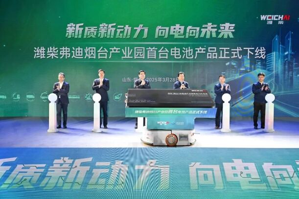 山東重工旗下濰柴弗迪煙臺(tái)產(chǎn)業(yè)園首臺(tái)電池產(chǎn)品正式下線