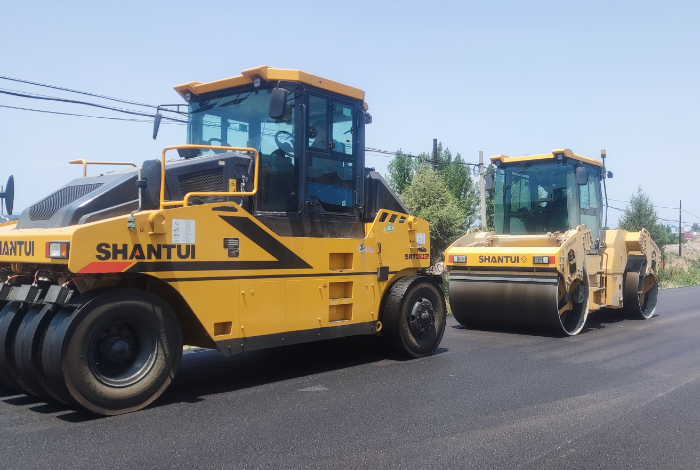其中山推產品施工內容包括:攤鋪機進行一次性面層鋪設,鋪設寬度8-8.5m;鋪設后先雙鋼輪振動壓實,后膠輪壓路機靜碾揉搓表面壓實,施工遍數兩次。施工后進行壓實度、平面度測量,達到施工標準要求。