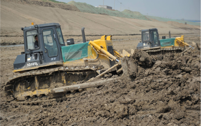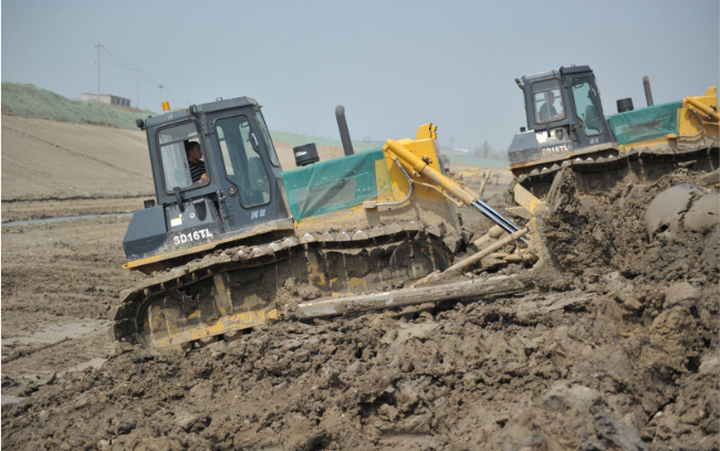 十幾輛山推SD16TL推土機(jī)在運(yùn)河河道內(nèi)作業(yè),“馬力大、省油、駕駛室還舒服”,推土機(jī)駕駛員毫不掩飾的夸贊這些推土機(jī)。SD16TL推土機(jī)超寬的三角型履帶避免了機(jī)器在軟土、濕地、沼澤地帶等松軟物料作業(yè)場所作業(yè)時的下陷,在河道拓寬、清淤等水利工程施工中具備無可比擬的作業(yè)能力。