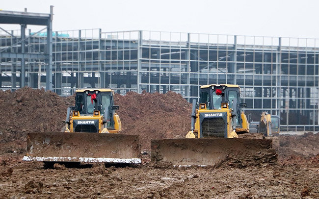 山推DH17-C2推土機(jī)等工作于南京某建筑工地,山推推土機(jī)駕駛方便、靈活,工作效率高、油耗低。濕地履帶很好的適應(yīng)南方潮濕泥濘的工作場(chǎng)景,駕駛舒適、視野寬闊,客戶口碑極好,回購(gòu)率一直很高。
